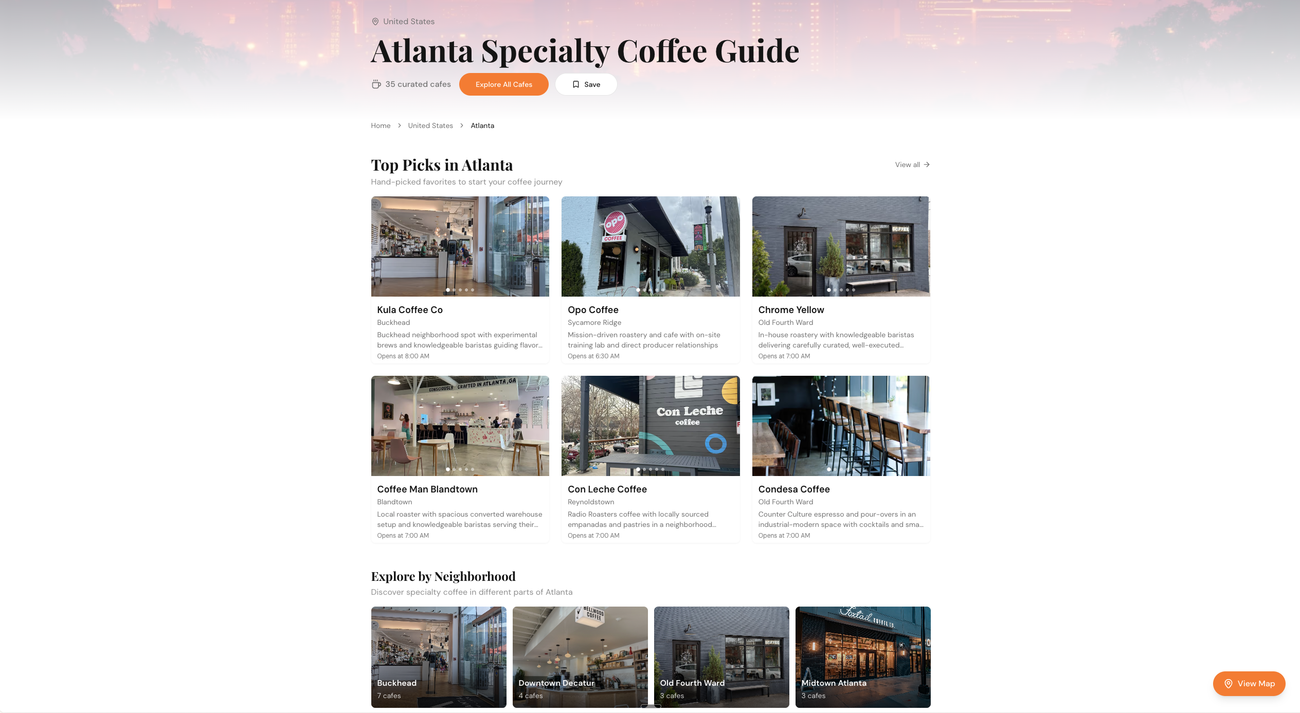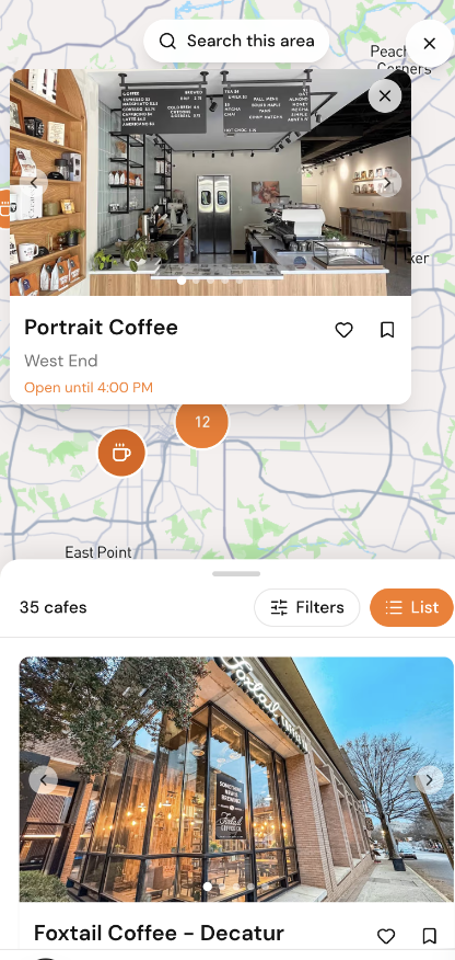 - 35 hand-picked specialty cafes across Atlanta