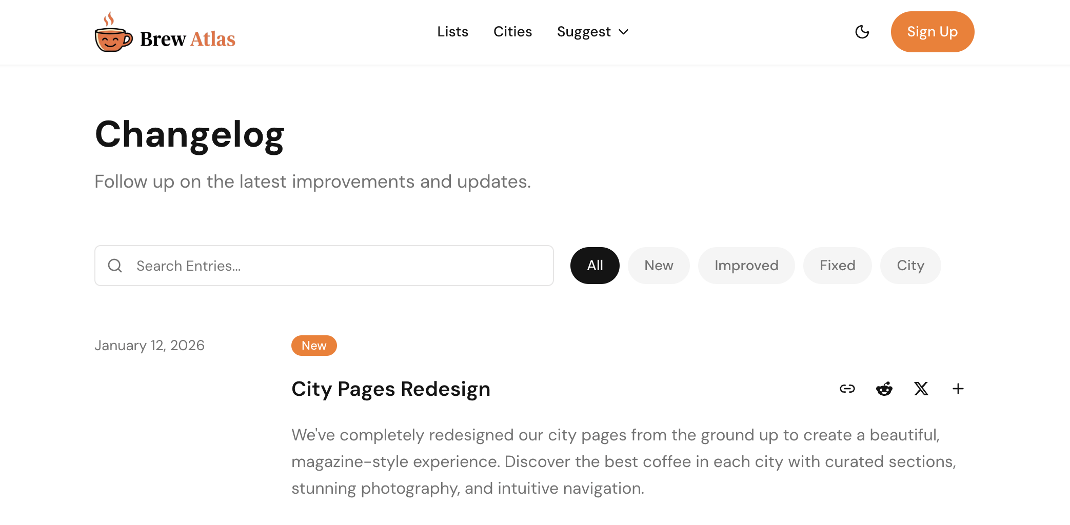 Stay in the loop with our new changelog page. Track all the latest features, improvements, and updates to BrewAtlas in one place.
