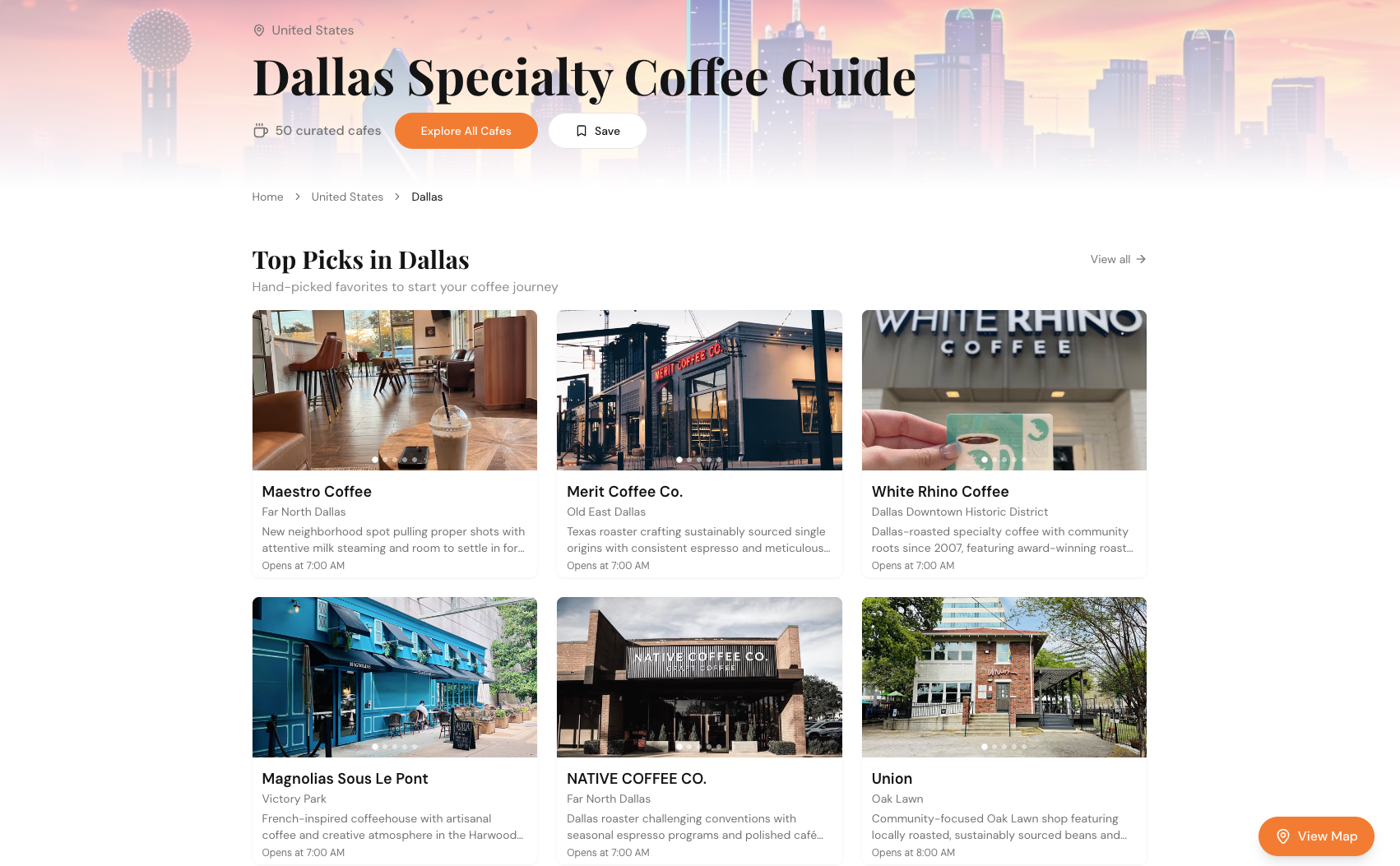 - 45 hand-picked specialty cafes across Dallas–Fort Worth
