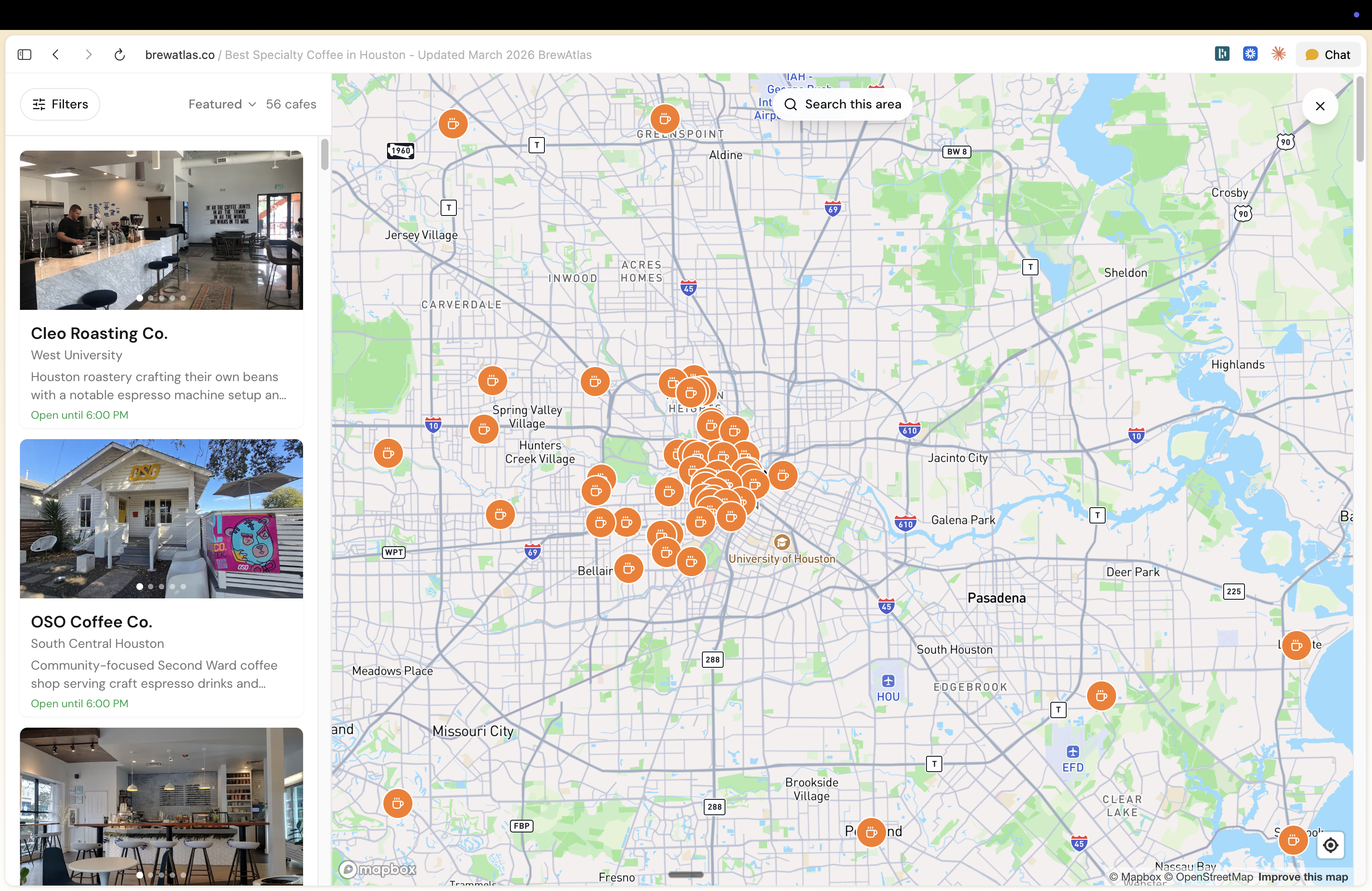 - 56 hand-picked specialty cafes across Houston