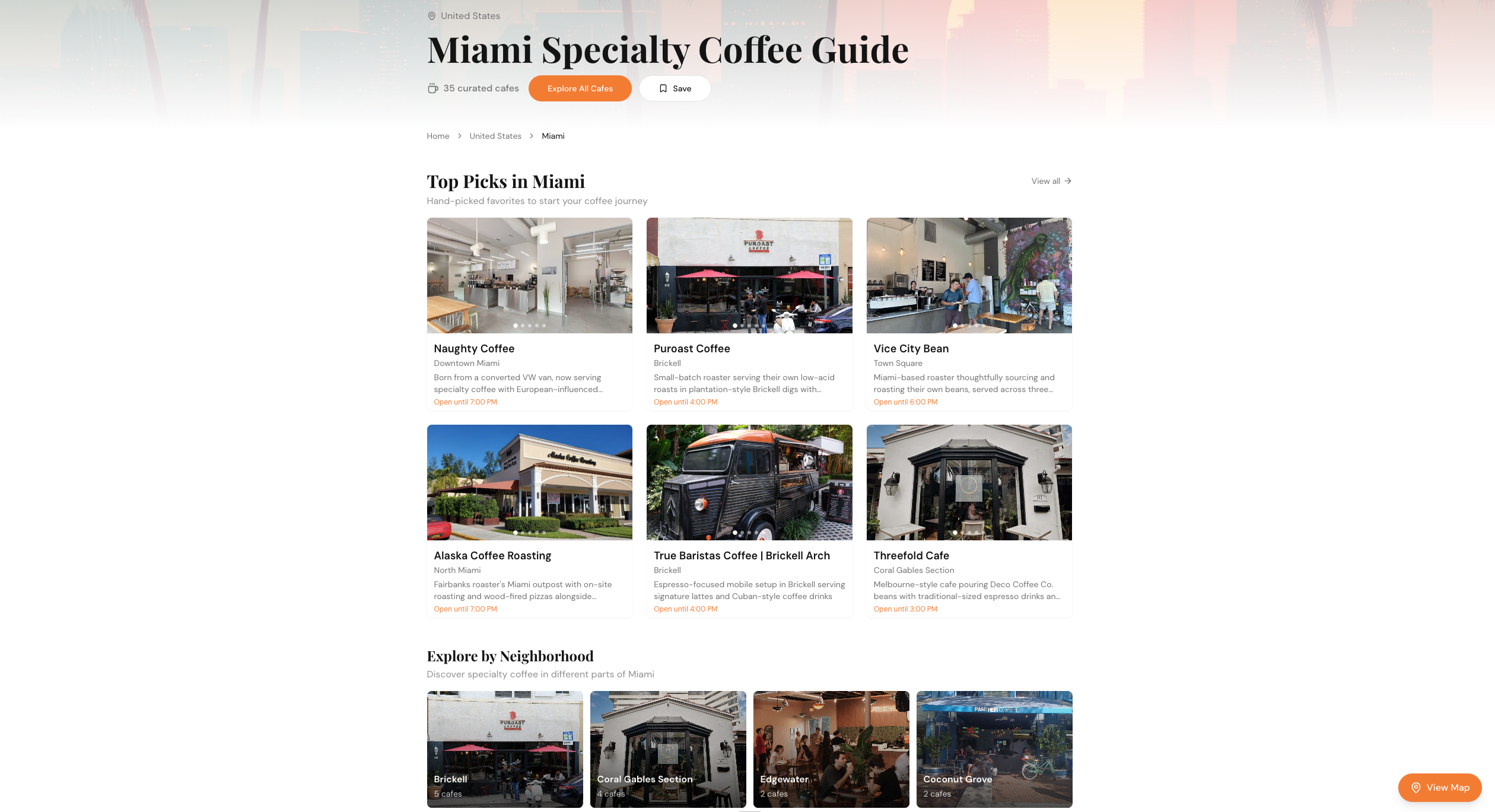 - 35 hand-picked specialty cafes across Miami