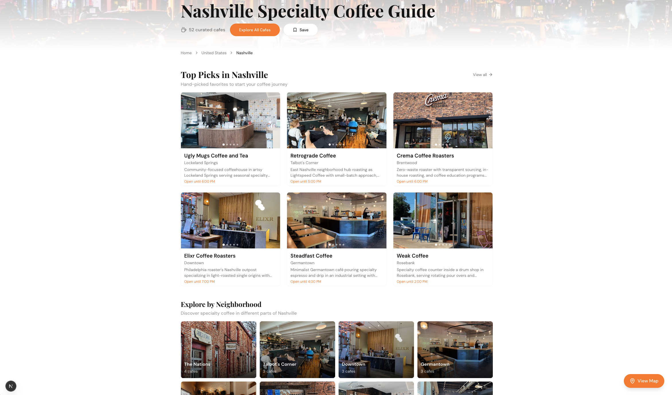 - 54 hand-picked specialty cafes across Nashville