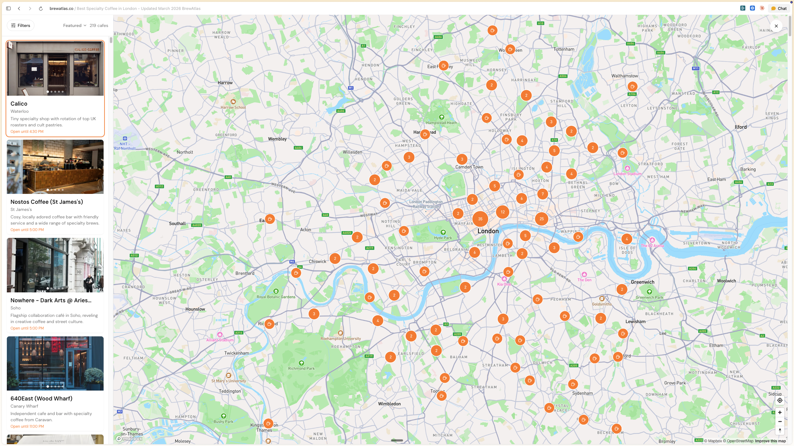 - Full interactive map of every cafe in the city