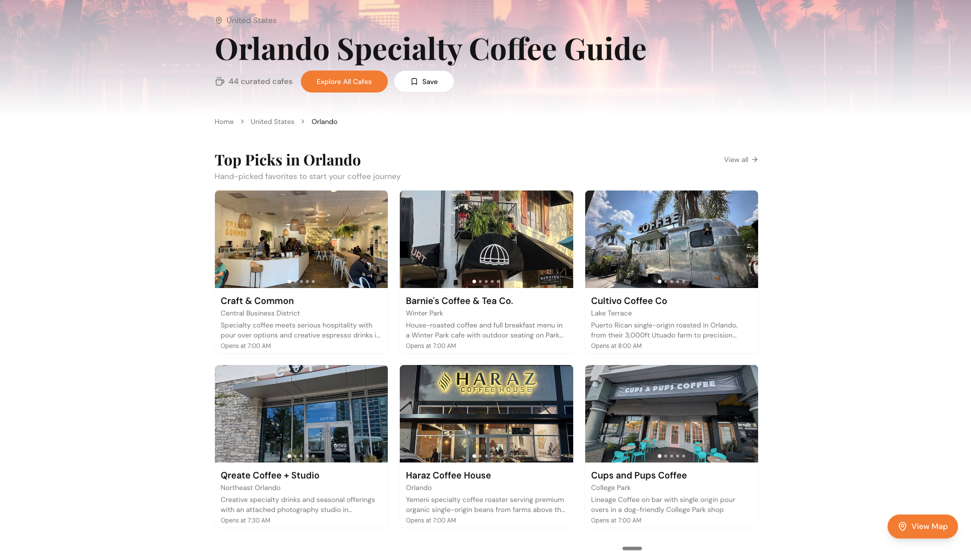 - 44 hand-picked specialty cafes across Orlando and surrounding areas
