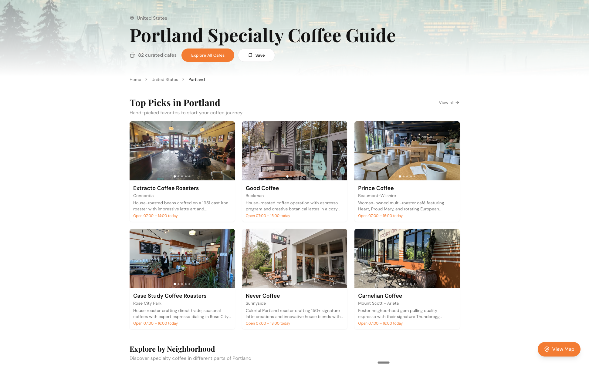 - Curated specialty cafes across Portland