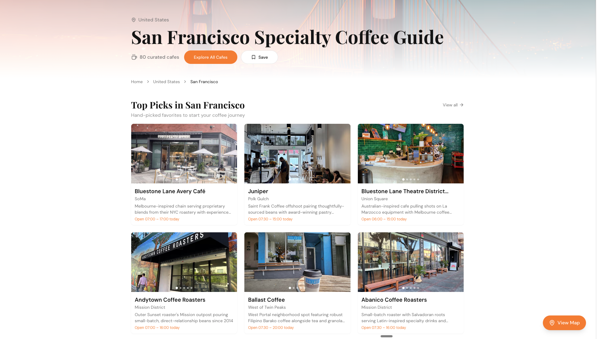 - 80 hand-picked specialty cafes across San Francisco