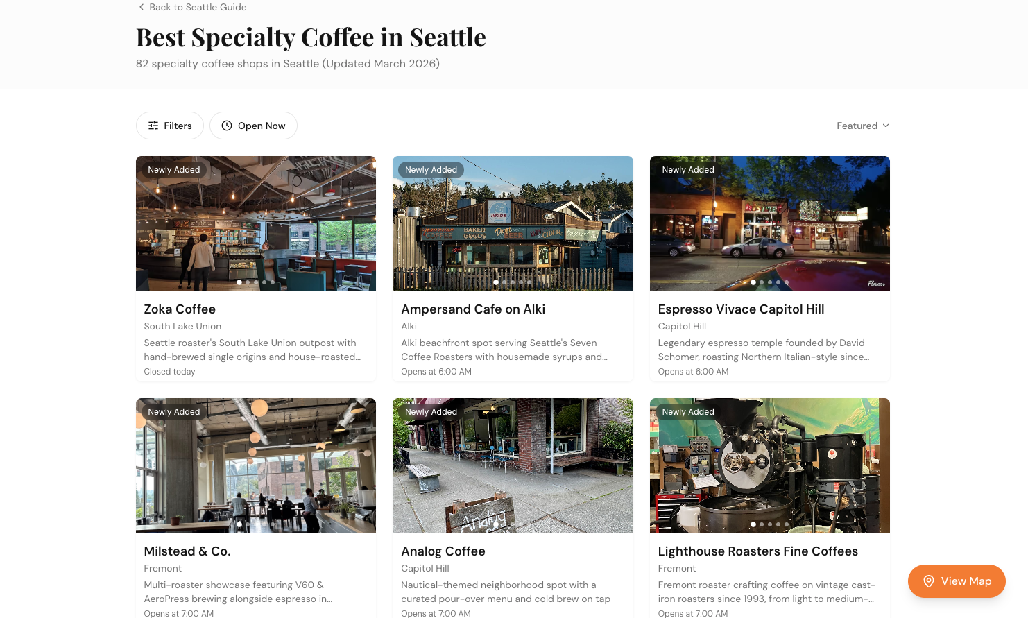 - 82 hand-picked specialty cafes across Seattle