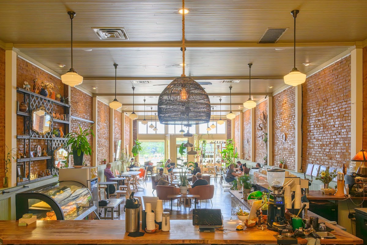 National competition barista crafts expertly prepared, thoughtfully sourced coffee in historic downtown setting