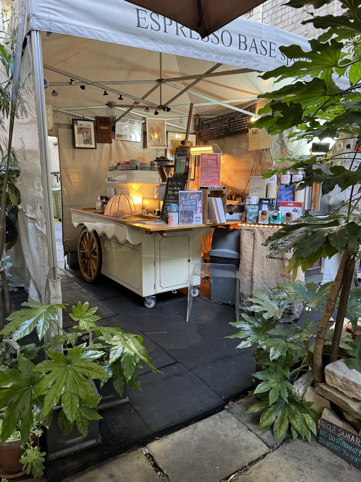 Tiny specialty shop with rotation of top UK roasters and cult pastries.
