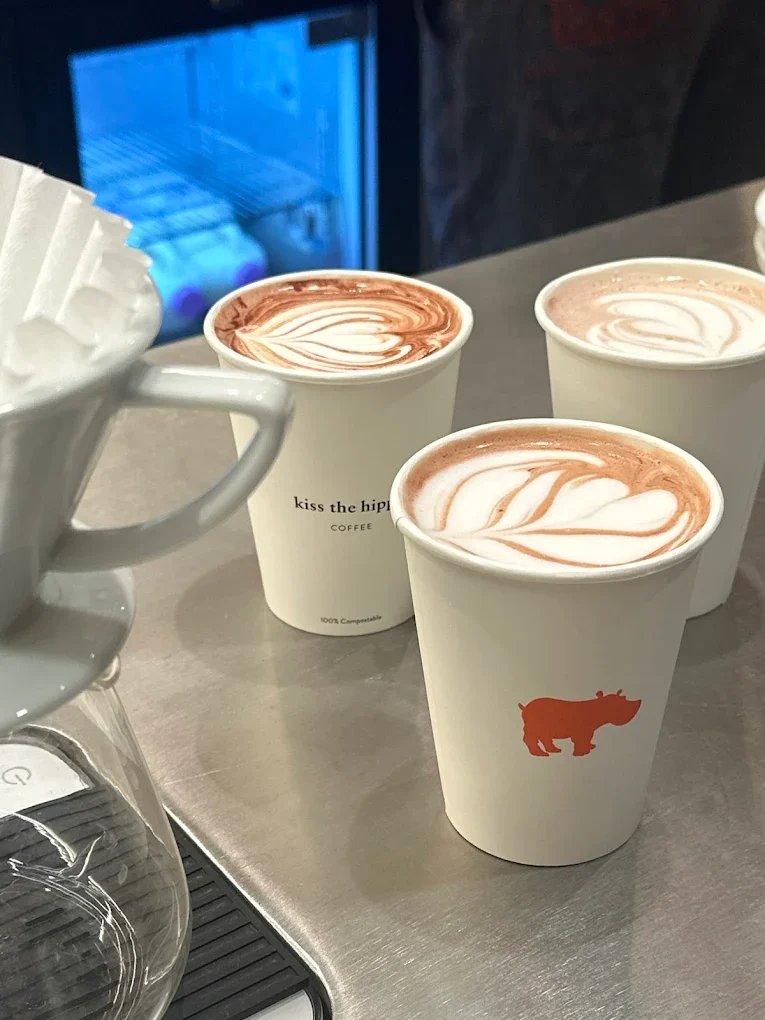 Kiss the Hippo Covent Garden is part of London’s first carbon-negative coffee company, offering sustainable coffee blends, seasonal single origins, chai lattes, matcha, and delightful pastries in a lively setting.