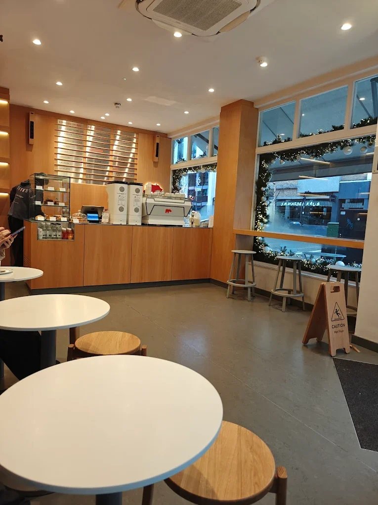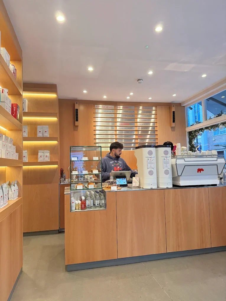This Fitzrovia Corner location offers a warm, inviting space, excellent espresso and filter coffee, and a vegan-friendly breakfast and pastry menu in a modern setting.