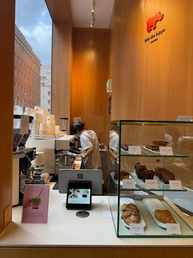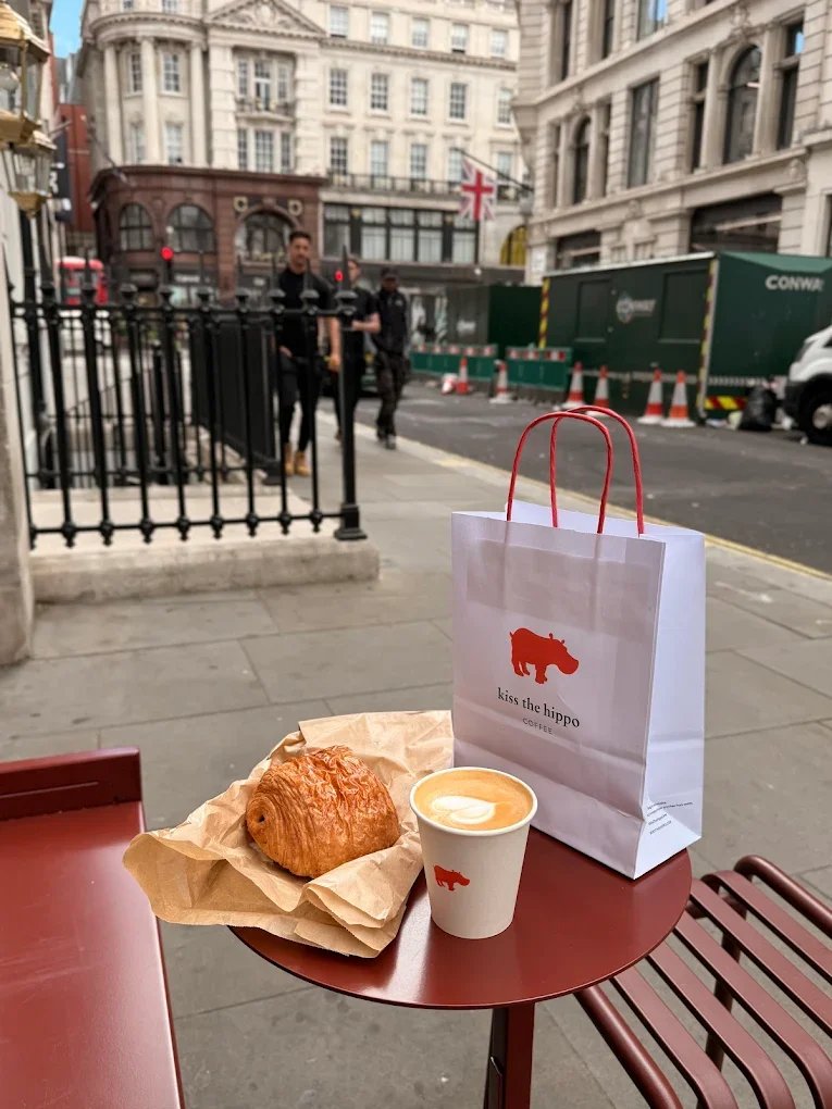 Kiss the Hippo Mayfair combines refined coffee culture with classic British hospitality, offering organically sourced coffee, a curated pastry menu, and a warm, inviting atmosphere.