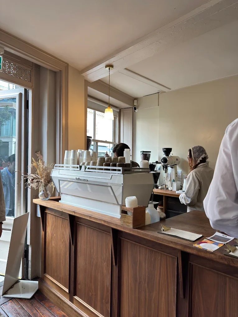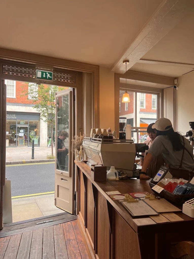 Nagare in Spitalfields offers seasonal single-origin coffee roasted nearby, complemented by a bright café interior and a bakery offering light pastries and excellent service.