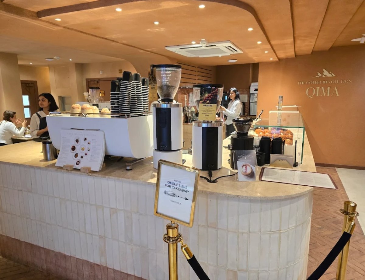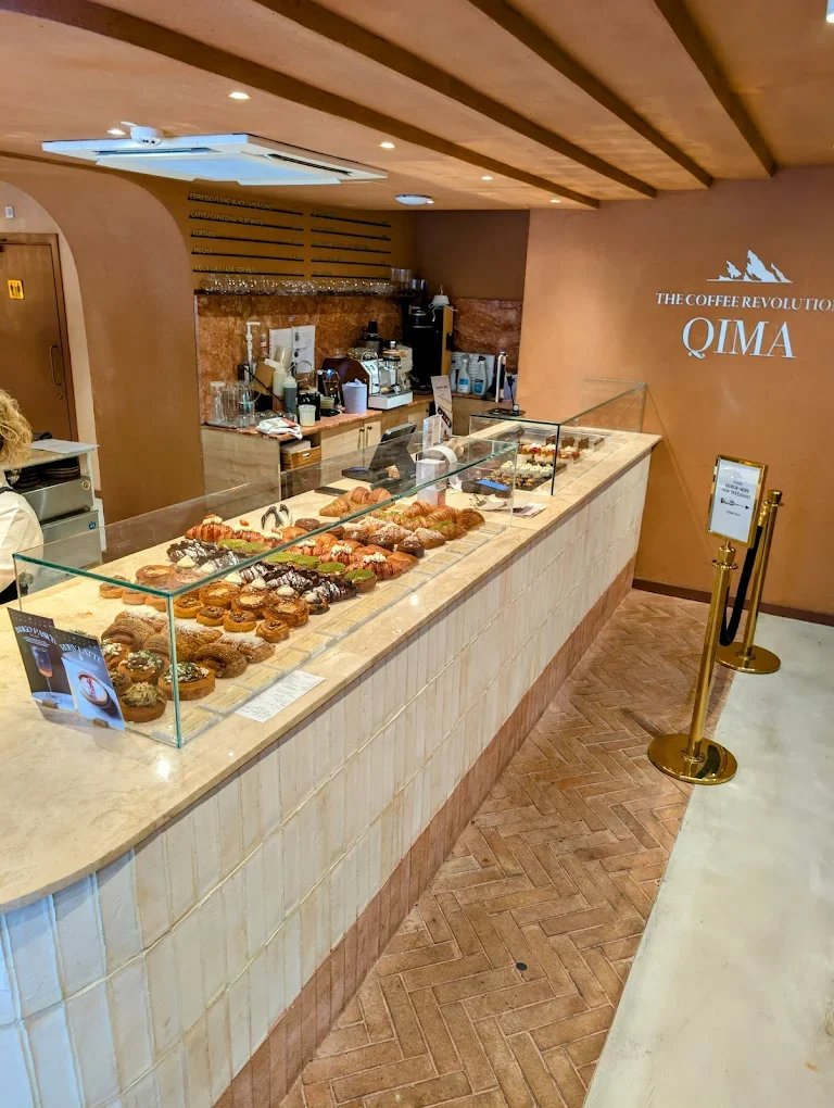 Qima Café Covent Garden features rare Yemeni single origins roasted in-house, a full patisserie menu, creative signature drinks celebrating coffee fruit (like Qishr Latte), and beautifully modern, light-filled decor.
