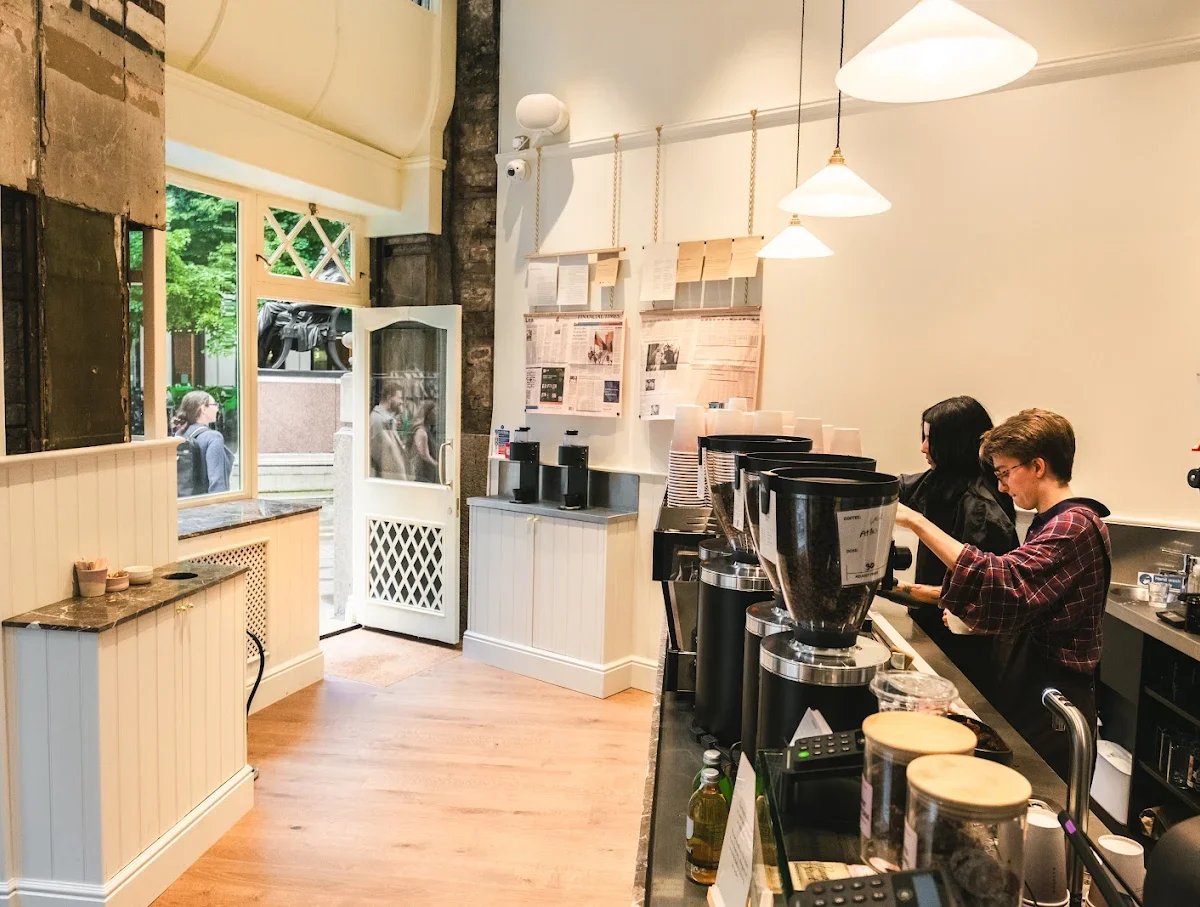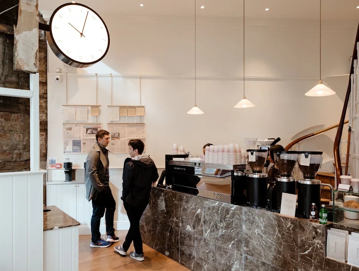 Rosslyn Royal Exchange serves artisanal coffee in a refined space, known for exceptional coffee with a welcoming atmosphere amidst the historic setting of London's financial core.