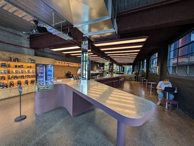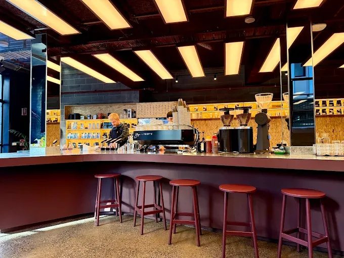 Toby’s Estate Fitzroy is serving up bold, flavour-forward coffee in a striking industrial space, think galvanised steel, warm wood, and plum-red accents. The café ditches the traditional divide between barista and customer, encouraging you to get (almost creepily) close to the action at the bar.