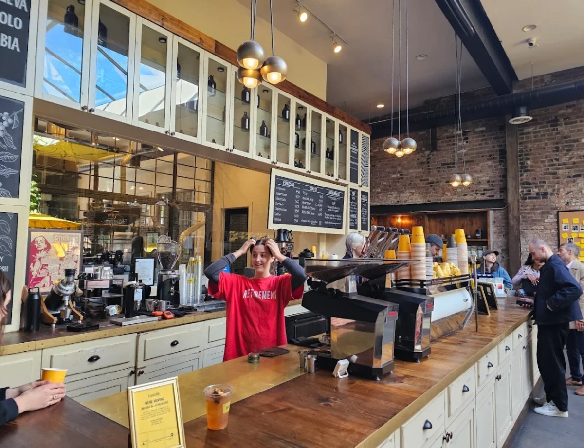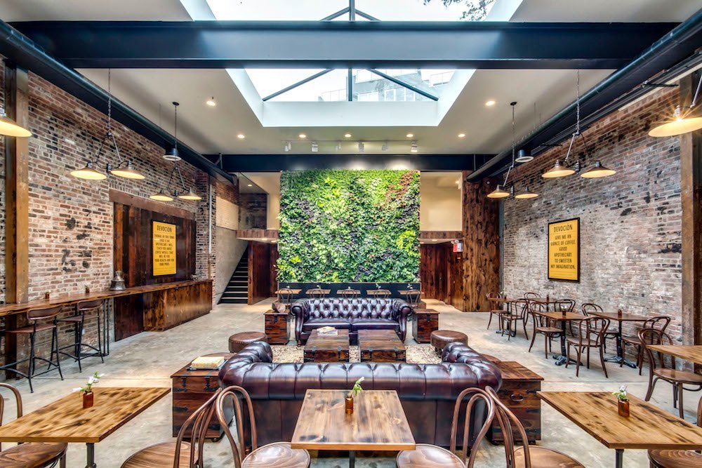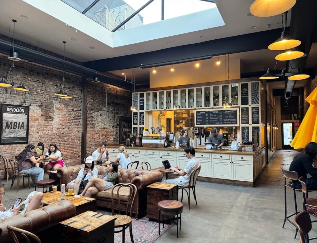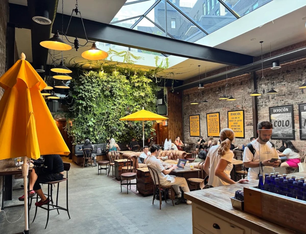 The Williamsburg flagship roasts direct-trade beans fresh off the plane from Colombia, serving them in dramatic light under a glass roof with a real jungle vibe. The vast space includes a coffee bar, seating areas, and lab for tastings.