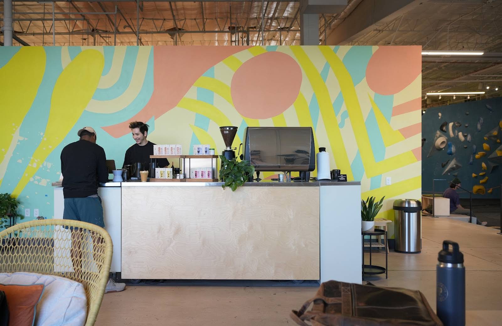 Quality pour-overs and espresso inside a climbing gym, featuring house-made syrups and fresh roasts
