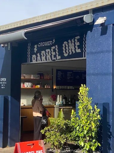 Established Barrel One cafe serving local community with roasted coffee and bagels.